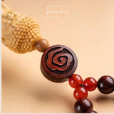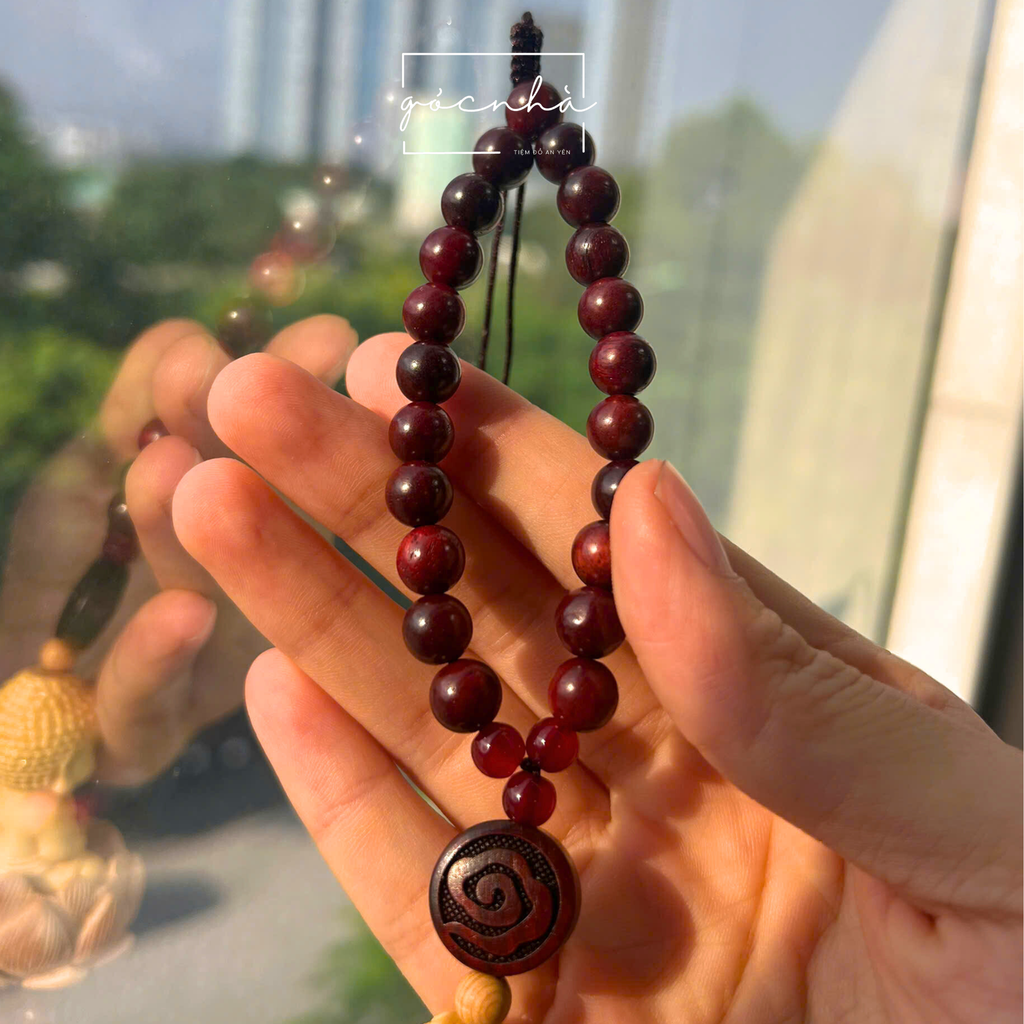 👉 Những hạt đàn hương hồng xâu chuỗi vừa tạo nên vẻ đẹp mộc mạc, vừa tỏa hương dìu dịu giúp tinh thần thư thái.