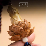 Trên khánh treo xe, hình ảnh Phật hiền hòa an tọa trên đài sen biểu trưng cho trí tuệ và lòng từ bi. Kết hợp cùng đồng điếu ngọc tròn đầy tượng trưng cho sự viên mãn, hài hòa và những hạt gỗ mộc mạc được xâu chuỗi cẩn trọng, mỗi chi tiết của Hộ Tâm An đều như một lời thì thầm về sự tĩnh lặng và bình yên trên mọi nẻo đường.
