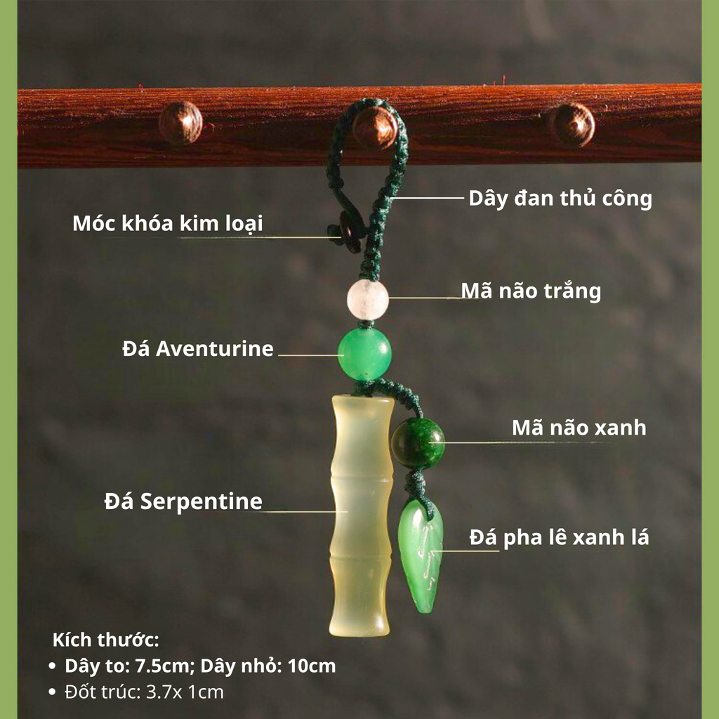 Trúc Quân Tử được chế tác từ dây đan thủ công kết hợp với các loại đá tự nhiên cao cấp với hình dáng đốt trúc ý nghĩa, rất phù hợp để treo chìa khóa xe, điện thoại,túi xách, ô tô,... hoặc làm quà tặng biếu cho những người mình trân quý.